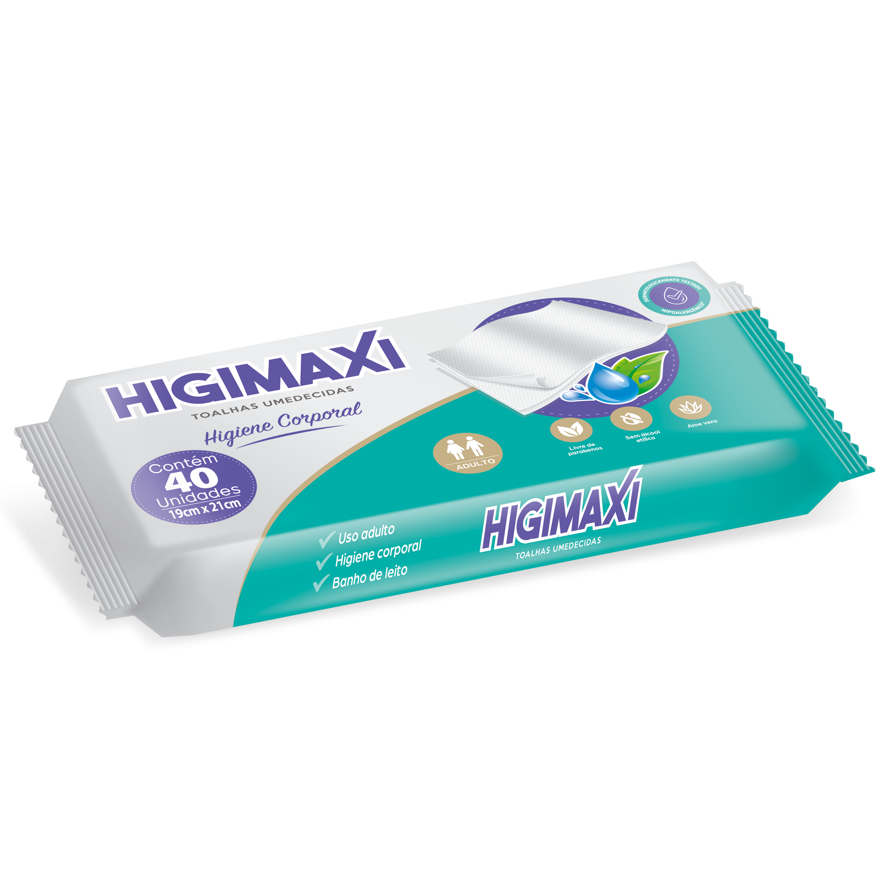 As toalhas umedecidas para adultos Higimax foram desenvolvidas para o cuidado e higiene pessoal. Sem álcool etílico, sua fórmula é enriquecida com Aloe Vera, que protege e hidrata a pele, deixando-a suave e delicadamente perfumada.