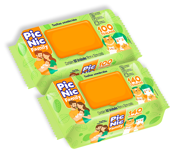 As Toalhas Umedecidas Pic Nic Family foram desenvolvidas com produtos de primeira qualidade e muito carinho para o cuidado e higiene diária de toda a família. Sem álcool etílico, parabenos e proteína do leite, sua fórmula é enriquecida com Aloe Vera, que protege e hidrata a pele de todas as idades, deixando-a suave e delicadamente perfumada.
